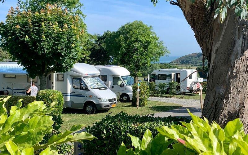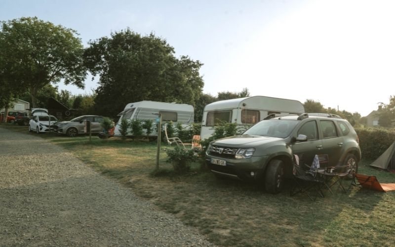 Des emplacements de camping arborés de 70 à 100 m2 pour tentes, caravanes et camping-car, délimités par des petites haies.